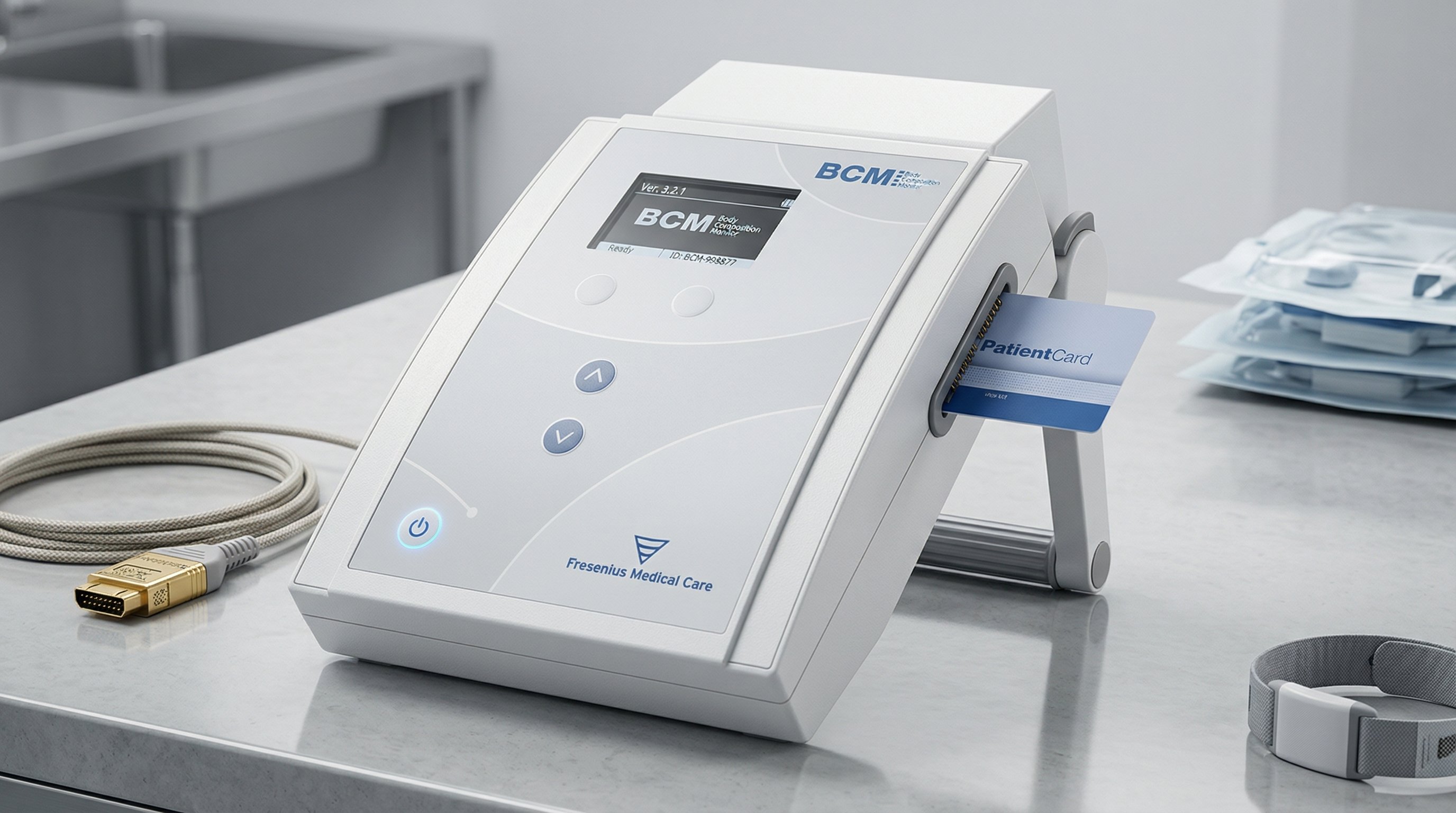 BCM(Body Composition Monitor)是專為腎臟病患設計的身體組成分析儀。它能精確測量您體內水分與尿素的分佈量(也就是透析計算中重要的「V 值」),協助醫師更準確地設定透析劑量,讓治療更符合您的身體狀況。操作非常簡單、快速,