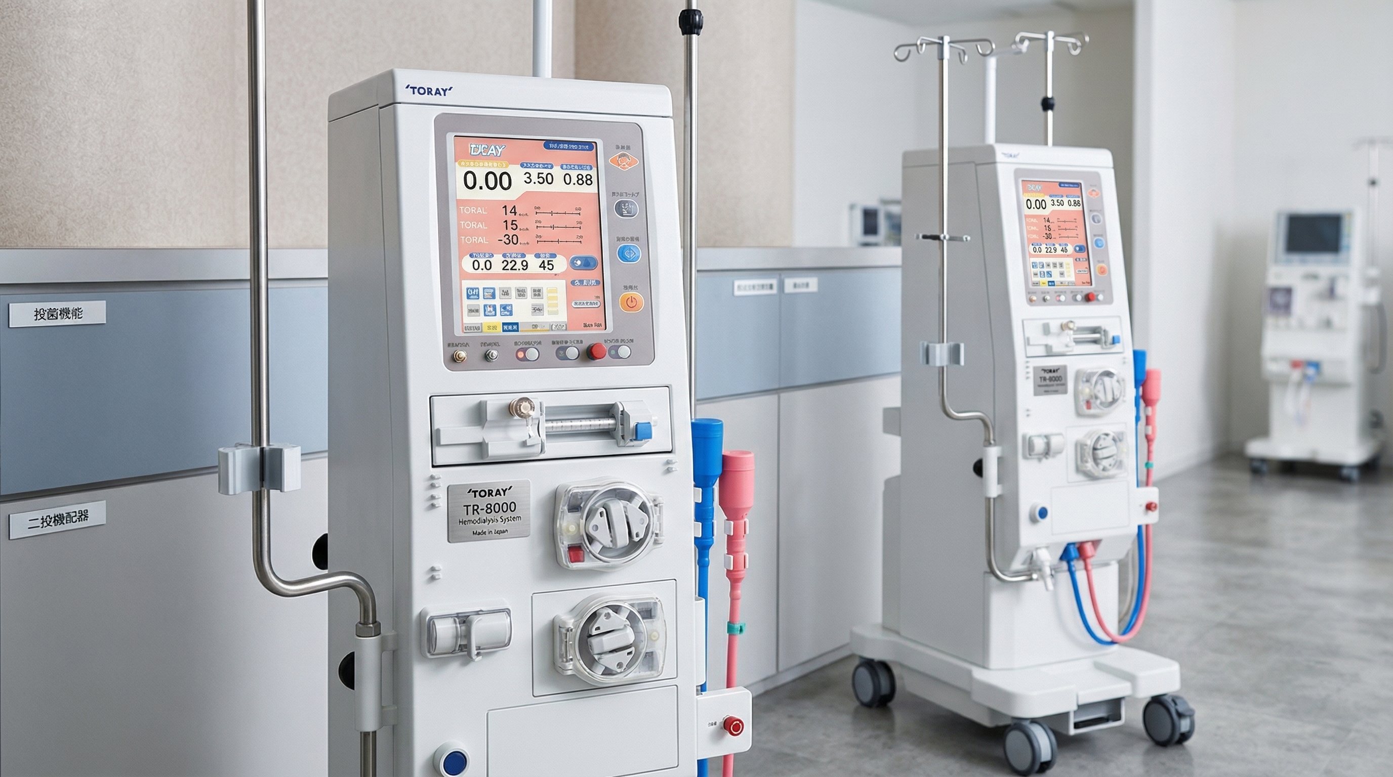 這是日本大廠 Toray 的最新一代洗腎機,以「智慧微電腦控制」與「病人舒適體驗」為設計核心。